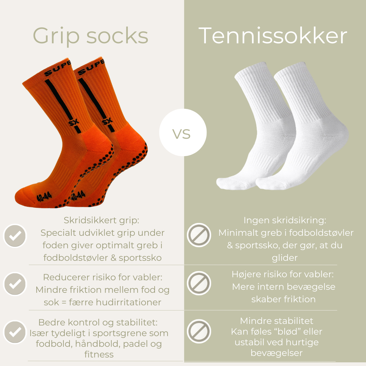 Supersox er designet til sportsgrene med deceleration, acceleration, sideskift og vendinger.